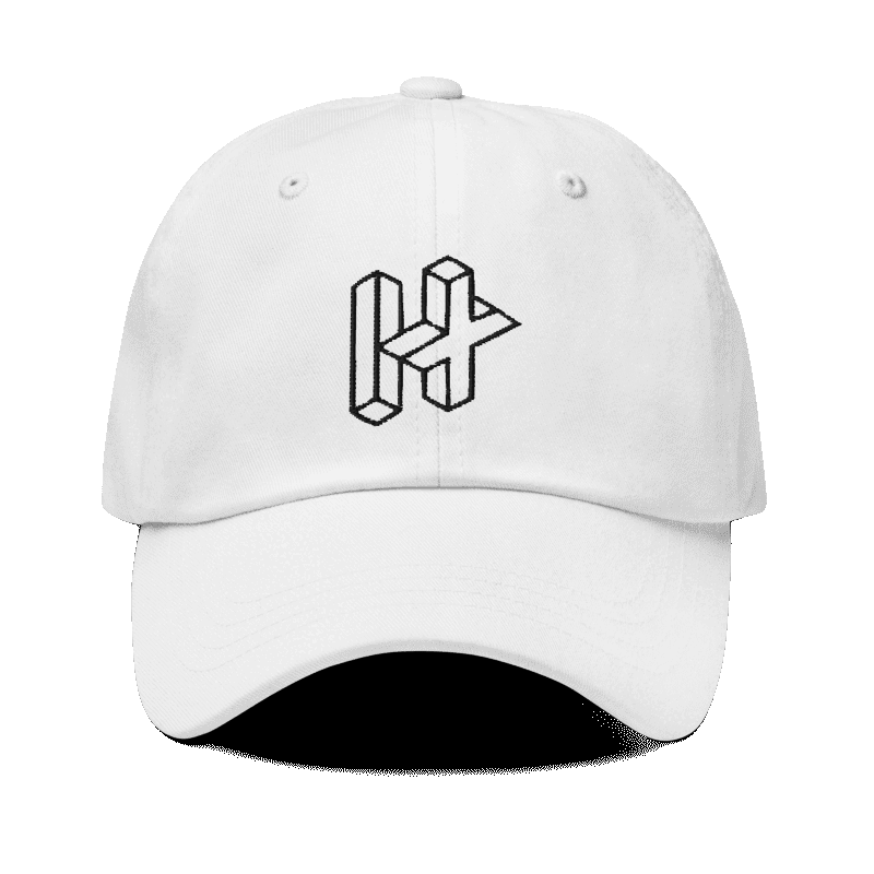 Custom embrodiered H+ Hat, made to order to reduce waste. Limited quantities, high quality and adjustable, comes in black or white.